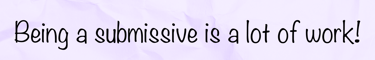 Now you're getting it. Just as topping requires the top to study the body and understand the signs of a sub that's at their limit while simultaneously trusting that their sub will communicate their needs, bottoming requires effort or training. Often both. There's a big push from the submissive community that training is required from the domme and that's not entirely false: after all, how would someone know what their domme wants if she doesn't tell them? However, there is a baseline that dommes expect when a sub enters their life. If we're searching for a domestic servant, we want to know you don't live with dishes piled all over your counter. Because if you can't keep your own place clean, why would your domme expect that you'll do a good job cleaning their home? If we're searching for a impact or rope bottom, we want to be informed of all the physical injuries you currently have that will need to be accommodated. Hiding this information to make yourself seem like a better pick for a domme isn't safe: if you're seriously injured during a scene because of lasting effects from a previous injury and you chose not to inform your domme, you can ruin the scene for her. You could even ruin topping for her. Not to mention it isn't safe for you.