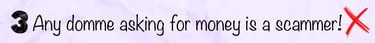 Okay, this is a big one. And it's a tough topic, because scammers are not good for the femdom community and the number of irresponsible "findommes" who are clearly thinking they can make a quick buck from being attractive has taken over femdom to such an extreme degree that it's very difficult to find any actual femdom content unless you're very careful about what you search online.