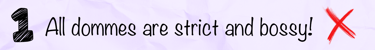 You're correct that many dommes are strict or bossy during play. If I start a scene, I want to trigger a certain emotion and I've planned out how I want to do it. I'd say my friends are similar, but we're all sadistic, and even if we were all very different dommes, we could not speak for every domme in the world. There is an element of control and an assertive nature that is required when dominating someone, but that's very different from expecting a woman who is always the boss.